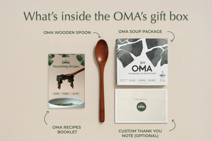 OMA is a seaweed bone broth that comes from the traditional Korean Miyeok-guk. Seaweed is high in Fiber and promotes healthy digestion. Nourishing, ready in 2 mins with Korean mom approved taste!