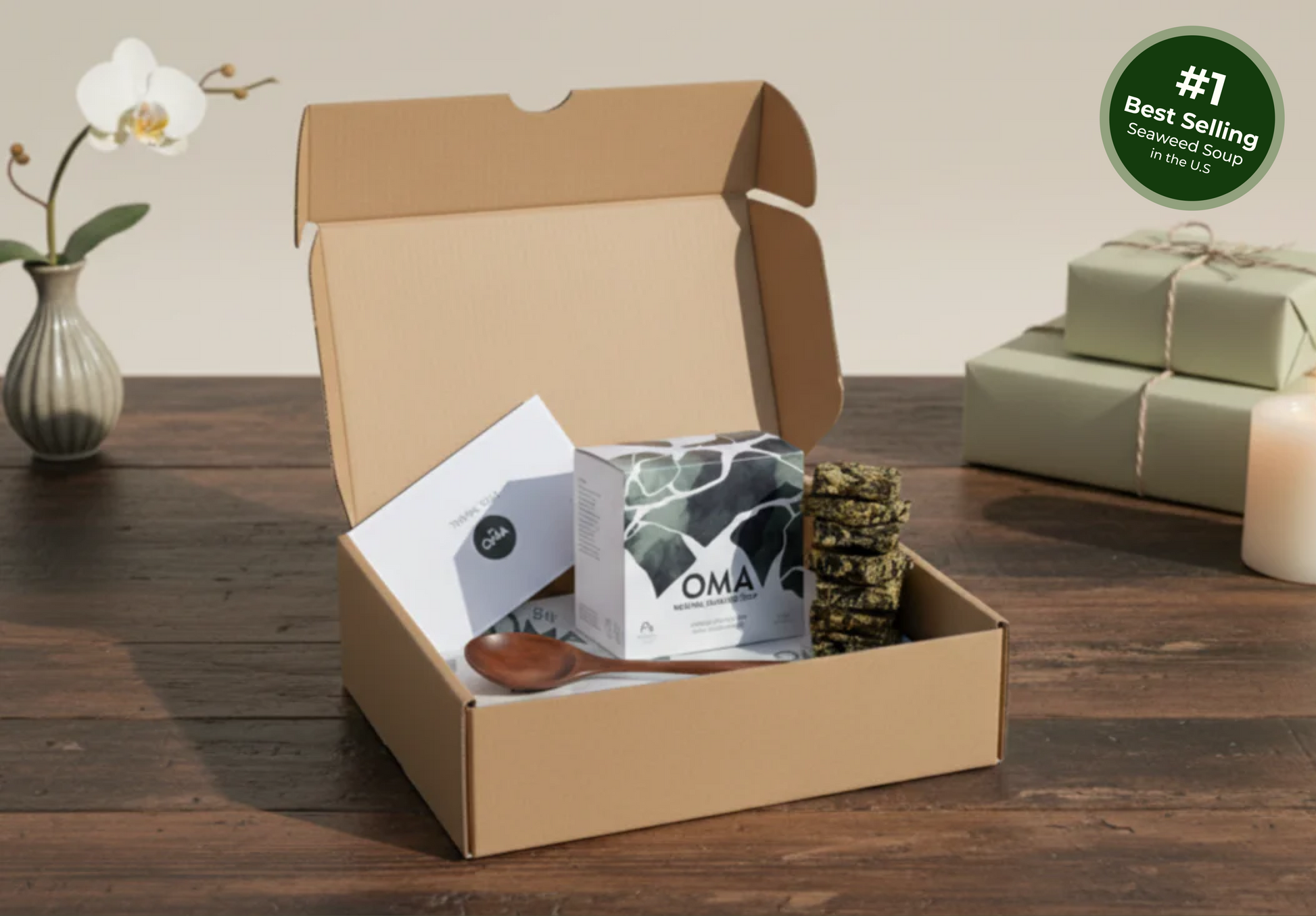 OMA is a seaweed bone broth inspired by traditional Korean miyeok-guk, the beloved “birthday soup.” It’s the perfect nourishing gift for someone you love. Ready in just 2 minutes, with a taste that’s Korean mom approved!